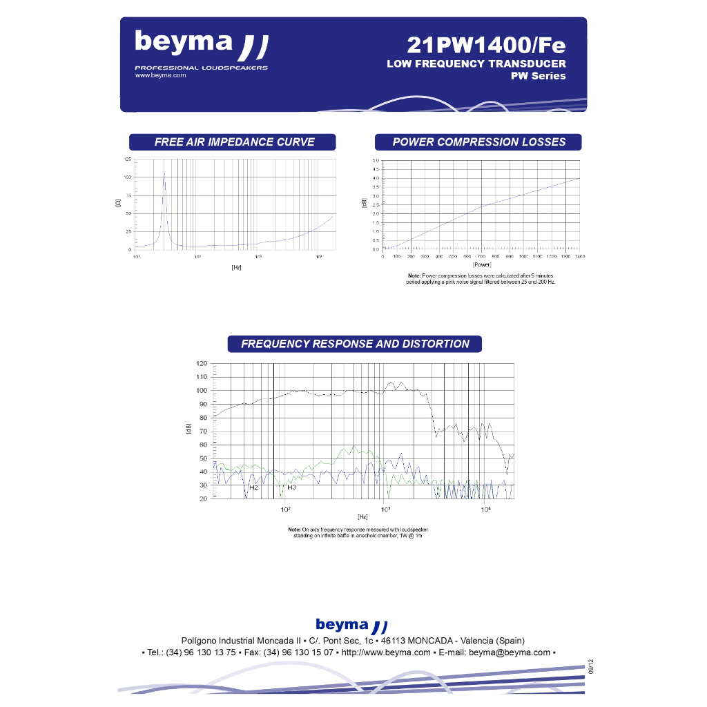BEYMA 21PW1400FE LOUDSPEAKER 8 OH LOW AND MID FREQUENCY WOOFER (P/N:121PW14FE8)