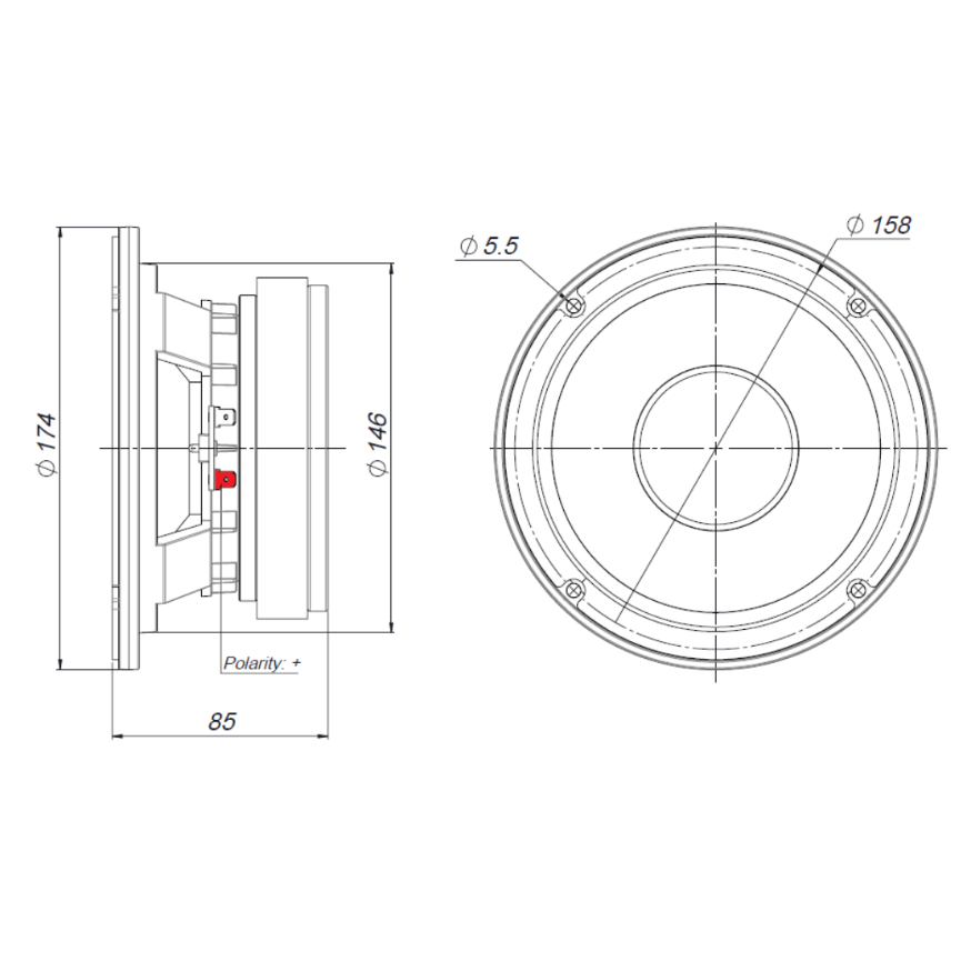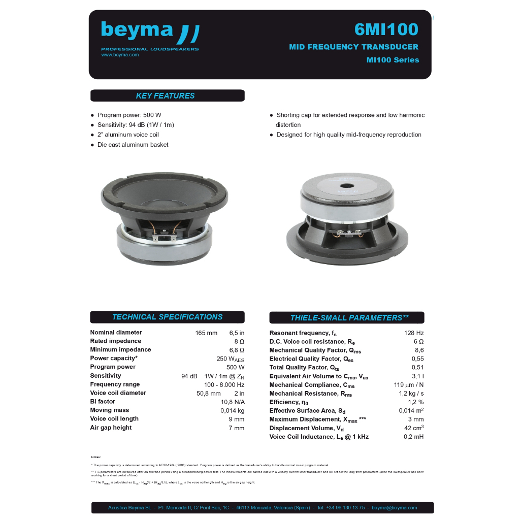 *** The Xmax is calculated as (Lvc – Hag)/2 + (Hag/3,5), where Lvc is the voice coil length and Hag is the air gap height.